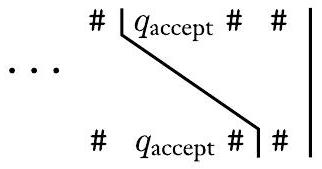 请注意,当我们构造一个匹配时,我们被迫模拟 $M$ 在输入 $w$ 上的行为。这个过程一直持续到 $M$ 达到停机状态。如果出现接受状态,我们希望部分匹配的顶部与底部“赶上”,以便匹配完成。我们可以通过添加额外的多米诺骨牌来安排这种情况。